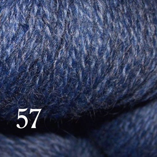 Färgning på det gråmelerade garnet ger en speciell färgskala. Den gotländska pälsullen är en mycket blank ullfiber.