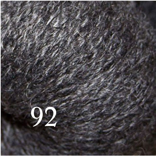 Färgning på det gråmelerade garnet ger en speciell färgskala. Den gotländska pälsullen är en mycket blank ullfiber.