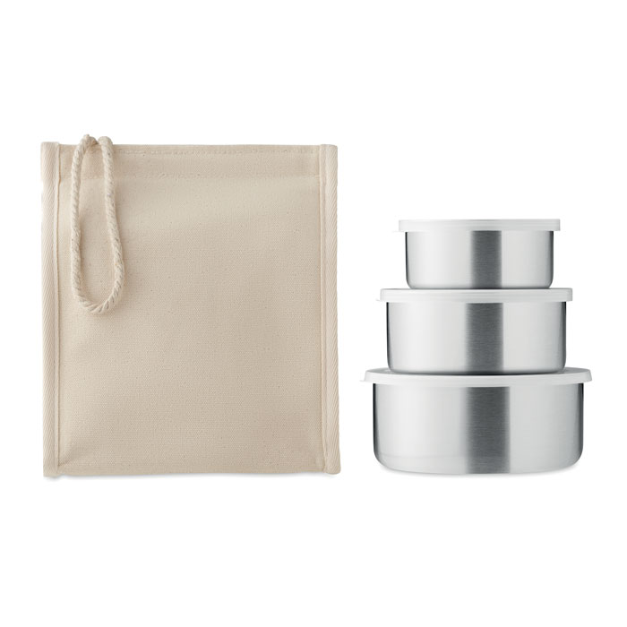 3 st lunchlådor i rostfritt stål med isolerad bomullspåse