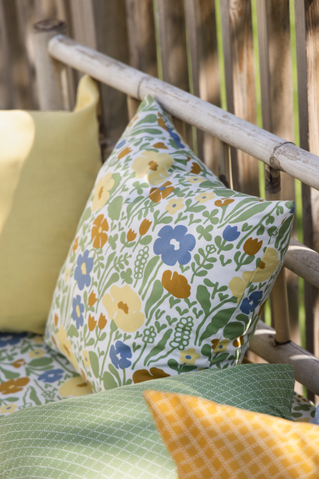 Mönstret är tryckt på kuddfodralets fram- och baksida med 31 cm mönsterrapport. Varje enskilt kuddfodral är unik och mönstrets placering varierar mellan produkterna. Innerkudde 50x50cm passar bra i detta kuddfodral, då ser kudden härligt fyllig ut. Färgen kan variera mellan produktionstillfällen beroende bomullens naturliga egenskaper.