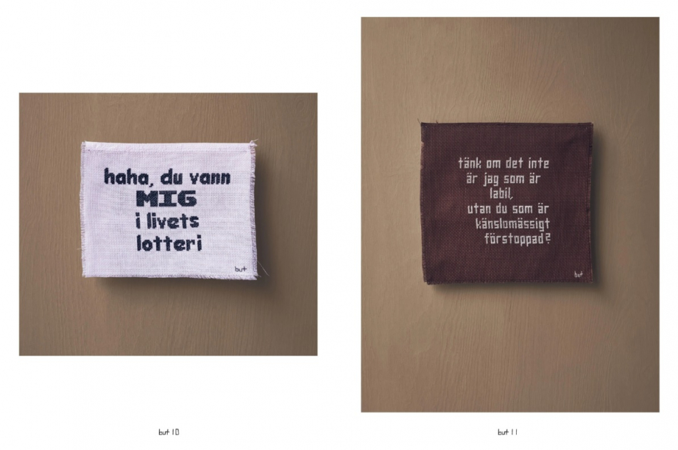 Från Instagramkontot broderauttexten känner vi igen Giselas broderade texter fyllda med humor och tröst. Texter som på ett lekfullt och överraskande sätt hela tiden rör sig kring vardagen, till igenkänning för alla som sliter med att få ihop livet, kanske tänker lite för mycket men som också inser att allt i tillvaron inte jämt blir så där perfekt.