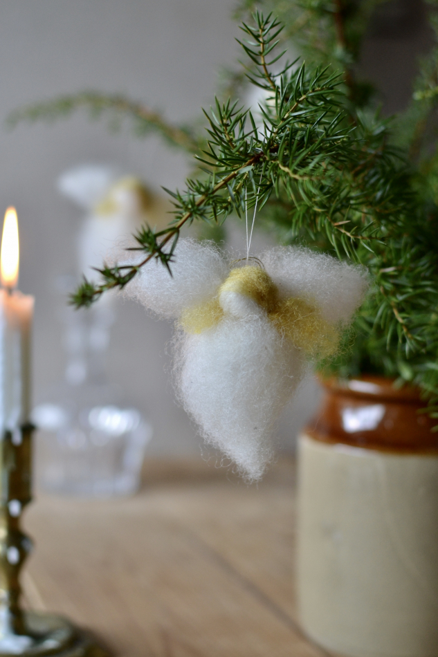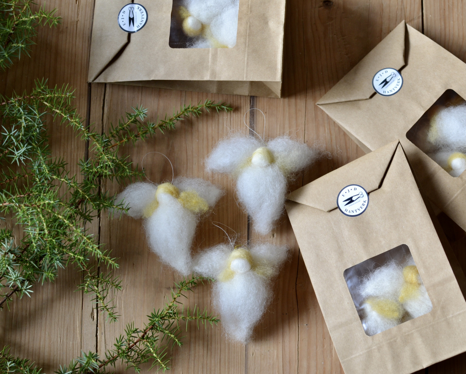 Handgjorda änglar av svensk fårull. Fina att hänga i granen eller kanske i fönstret?