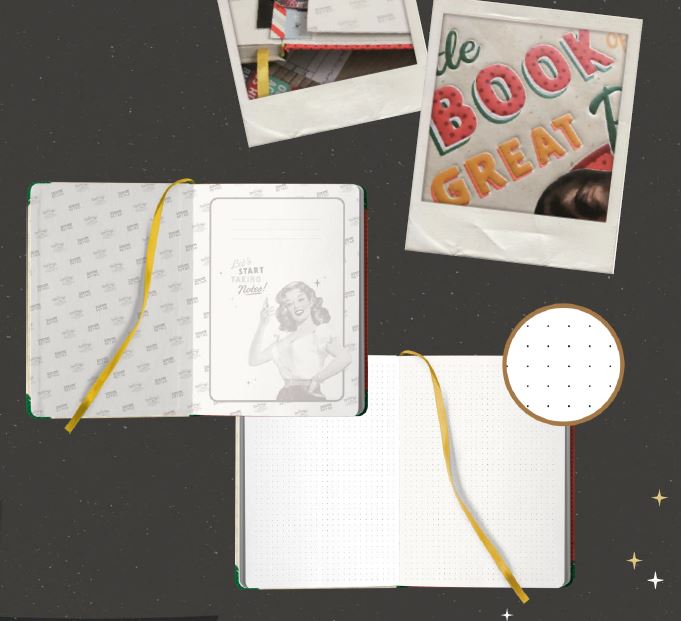 Underbar anteckningsbok i retrostil med många smarta detaljer.