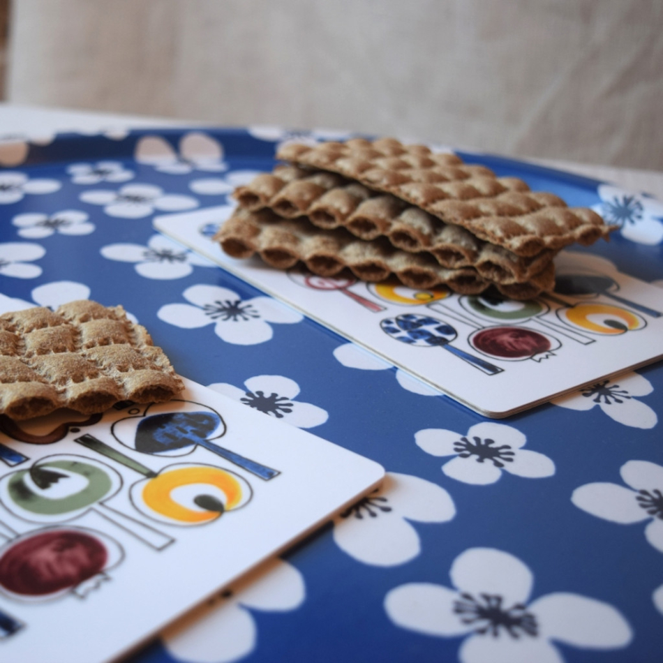 Blå vaxduk med måttet 145x220 cm som passar de flesta matbord.