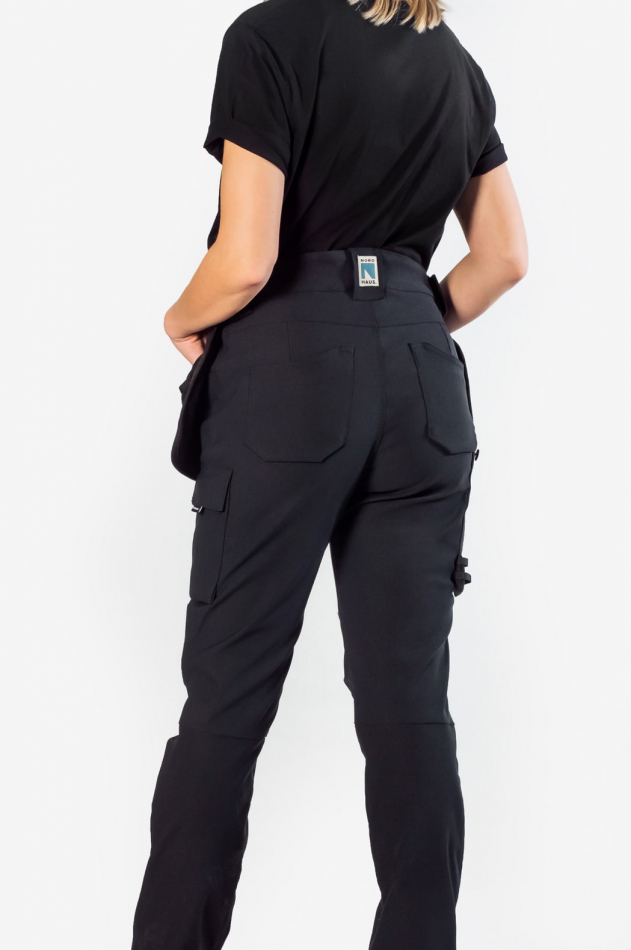 Fullständig rörlighet - Hela byxan i stretch, förböjda knän, hög midja baktill så att du kan arbeta obehindrat och smidigt.