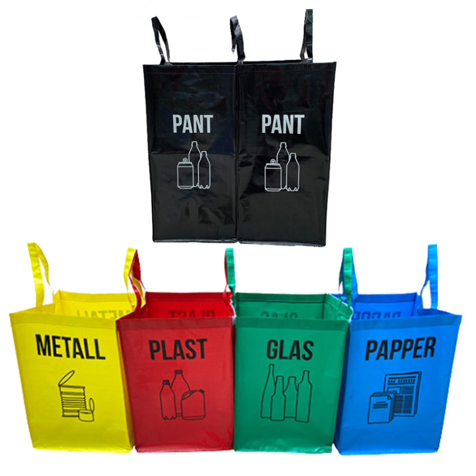 Returen är ett set med fyra högkvalitativa kassar för enkel källsortering i hemmet eller på företaget.