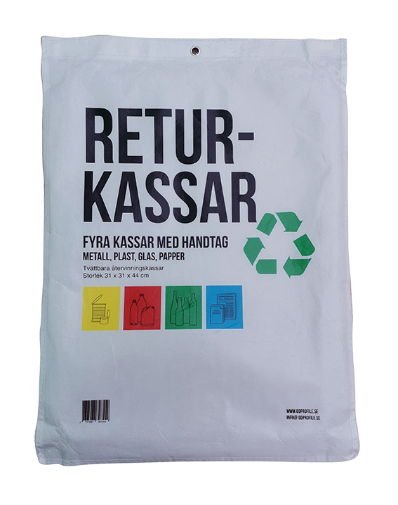 Returen är ett set med fyra högkvalitativa kassar för enkel källsortering i hemmet eller på företaget.