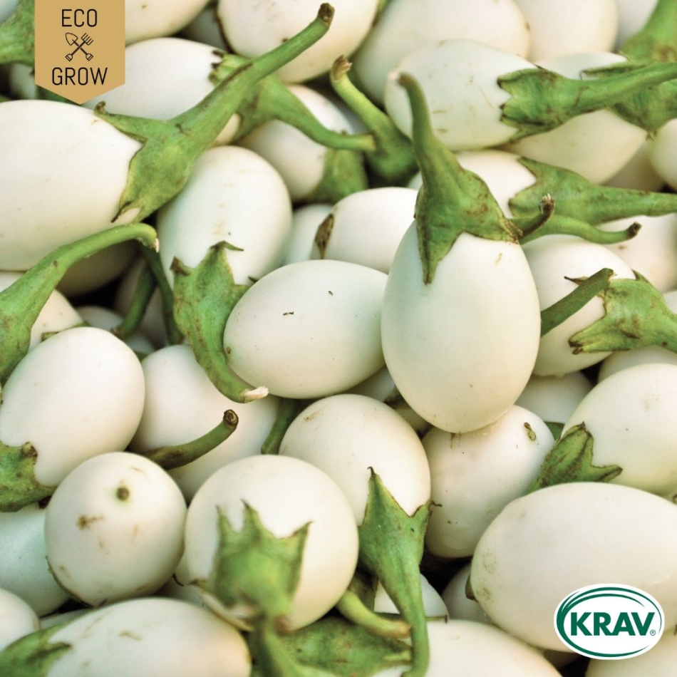 Kompakta, stabila plantor som ger mycket hög avkastning av vita, äggformade frukter på ca 8 cm. Frukterna har tunt skal och mild, finaromatisk smak utan bitterhet som passar utmärkt färska i sallad eller tillagade i ugn och wok. Medeltidig och snabbväxande sort för växthus eller kruka i soligt och skyddat läge.