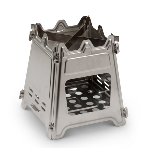 Ihopfällbart litet kök som kan eldas med pinnar, pellets eller briketter.