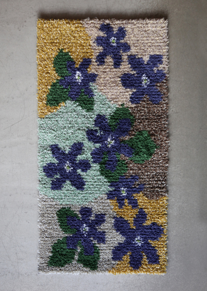 Blåsippa är inspirerad av en gammal ryamatta från Svensk Hemslöjds arkiv.