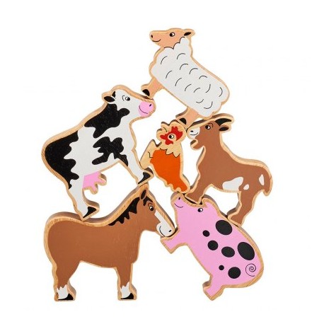 Sex stycken bondgårdsdjur av rejäla bitar återvunnet gummiträ.