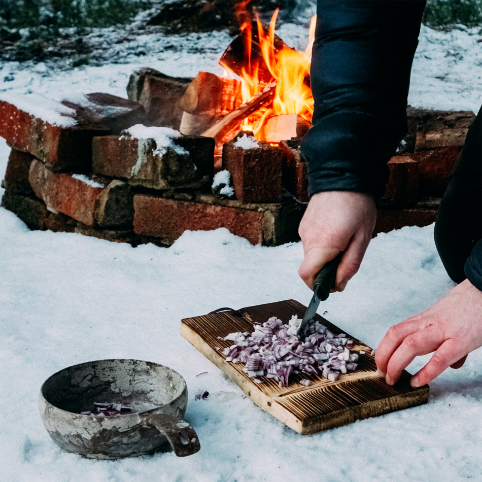 Skärbräda tillverkad i Dalarna av gran eller furu. Den värmebehandlade ytan ger skärbrädan en vacker yta och. Dess låga vikt gör den extra passande för den som föredrar ett lättviktsalternativ att ta med sig på turen.