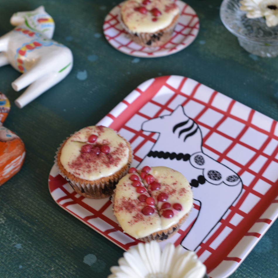 bricka/kakfat SWEDISH HORSEPOWER röd 20x20 cm