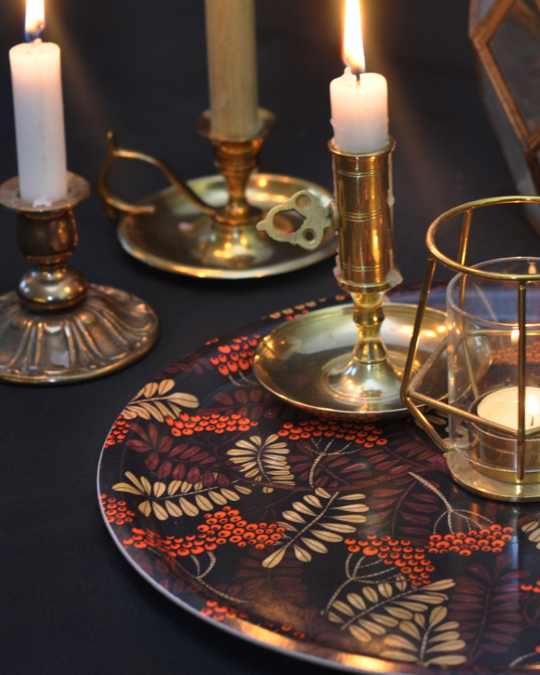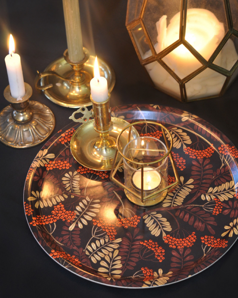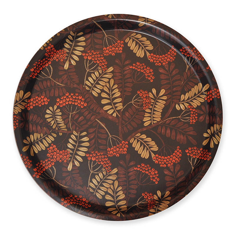 Bricka Rönnbär Brun, med handritat mönster Rönnbär.