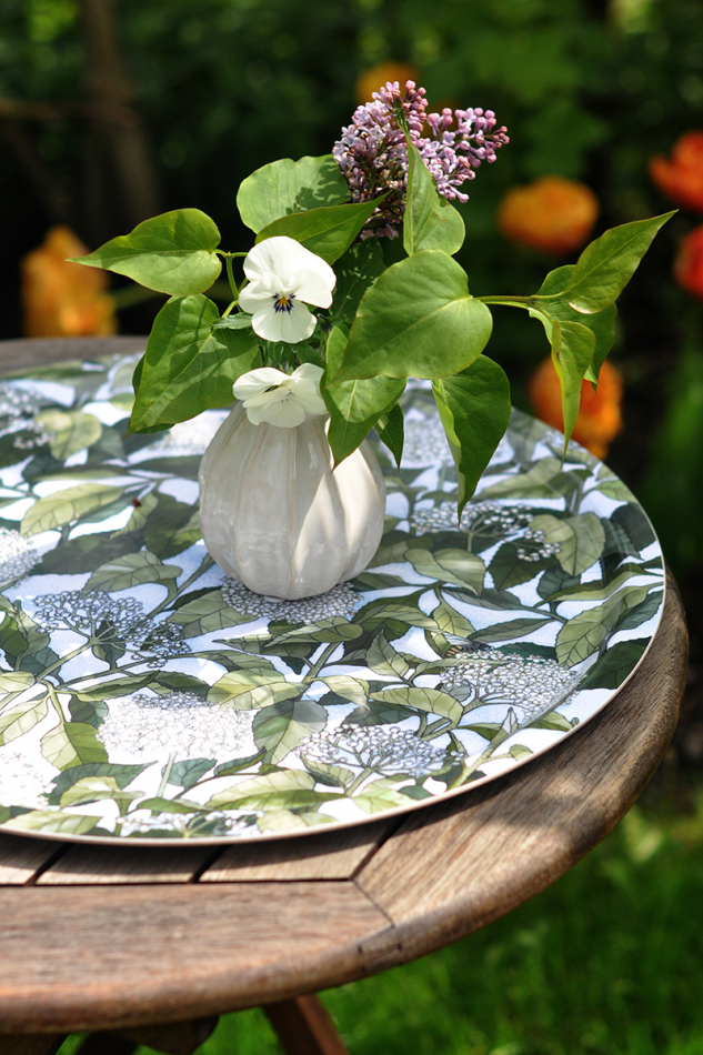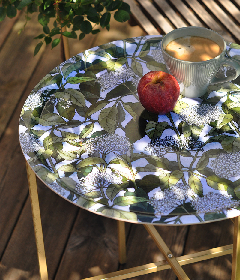 Brickbord Fläder med bricka i formpressad björkfanér, och handritat mönster Fläder.