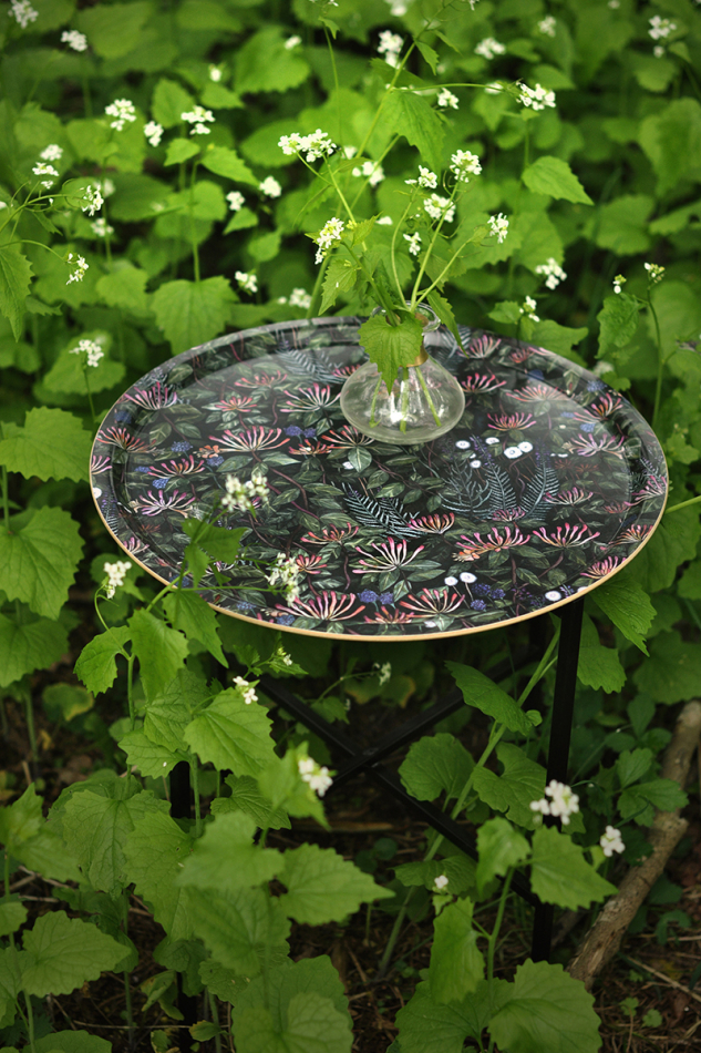 Brickbord Kaprifoler med bricka i formpressad björkfanér och handritat mönster Kaprifoler.
