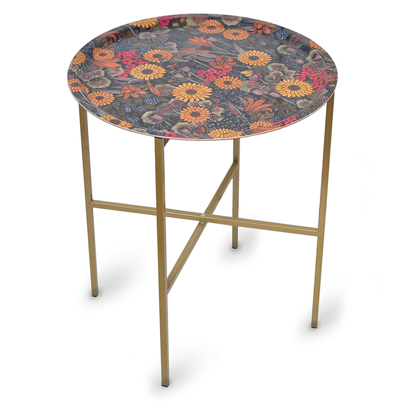 Med bricka i formpressad björkfanér och stativ av lackad stål i guld/mässing.