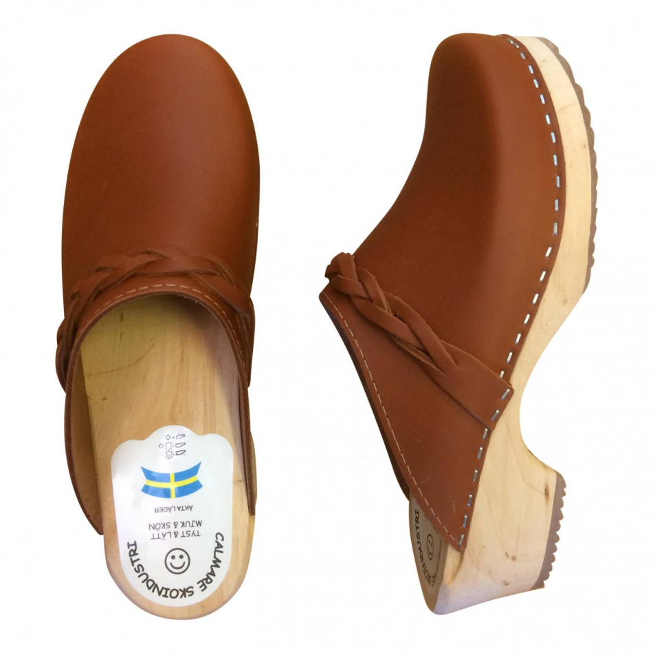Trendiga och bekväma träskor med flätad rem