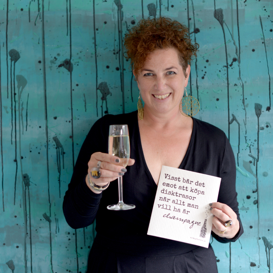 Disktrasa med tryck och text som på något sätt sammanfattar livets väsentligheter - åtminstone enligt min mening: "Visst bär det emot att köpa disktrasor när allt man vill ha är champagne." Här är disktrasan för champagneälskaren som hellre köper champagne än disktrasor. En disktrasa med tryck är perfekt att ge bort i present. Eller varför inte shoppa disktrasan till dig själv, för att lyxa till vardagen?