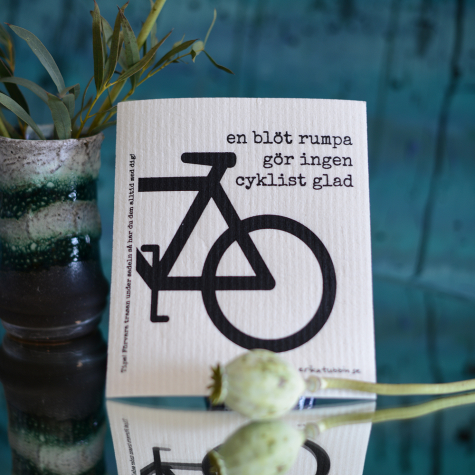 En trasa att ha under cykelsadel - alltid tillgänglig när sadeln och cykeln behöver torkas av efter regnskuren! För "en blöt rumpa gör ingen cyklist glad!"