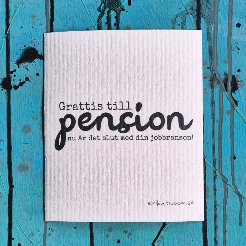 Text: "Grattis till pension, nu är det slut på din jobbranson!