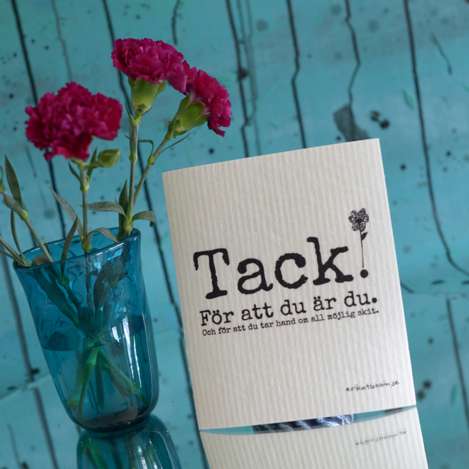 Disktrasa med tryck. Ge bort en disktrasa med en peppande text för att visa att du uppskattar någon. Texten "Tack! För att du är du. Och för att du tar hand om all möjlig skit." är ett talande budskap som får personen att känna sig uppskattad. Vit disktrasa med svart tryck. Disktrasan är tvättbar och tryckt med färg som gör minsta möjliga åverkan på vår natur.