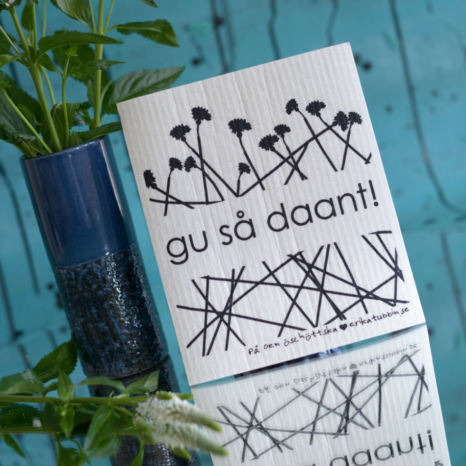 Material: cellulosafiber, miljövänlig tryckfärg. Komposterbar.