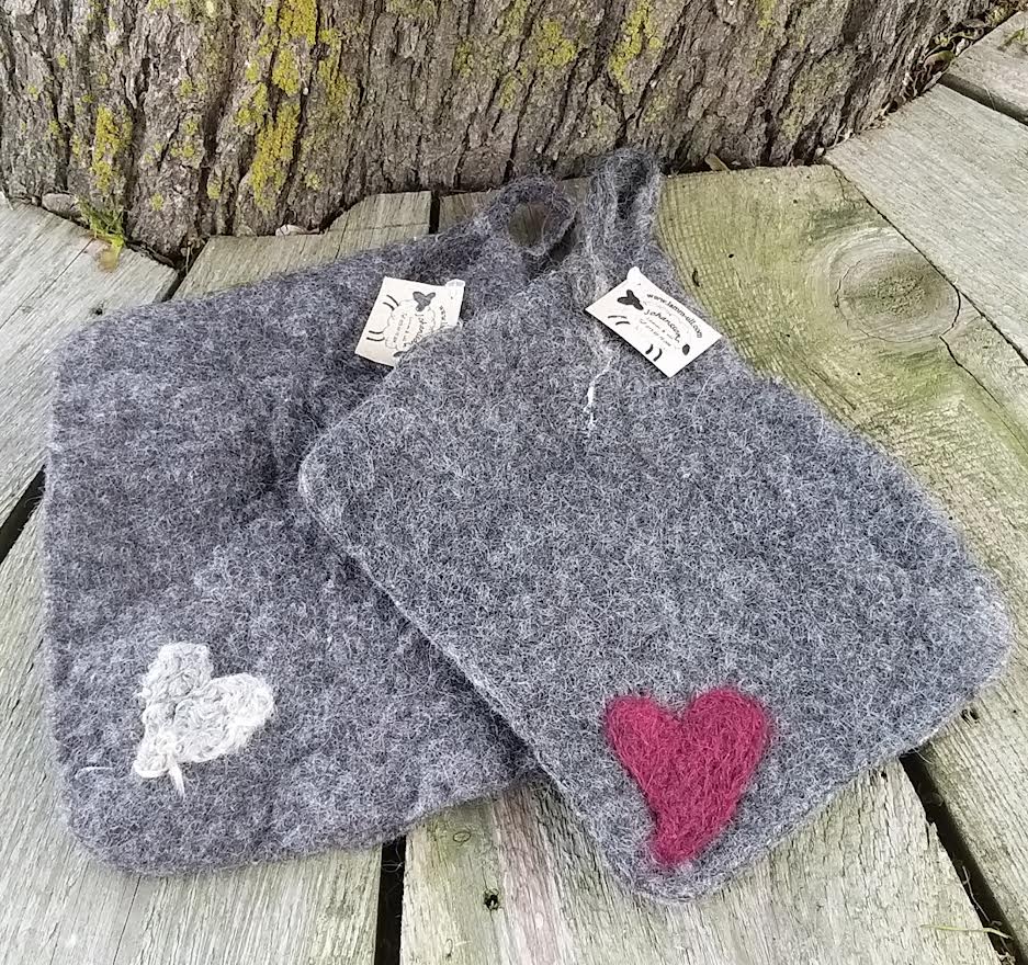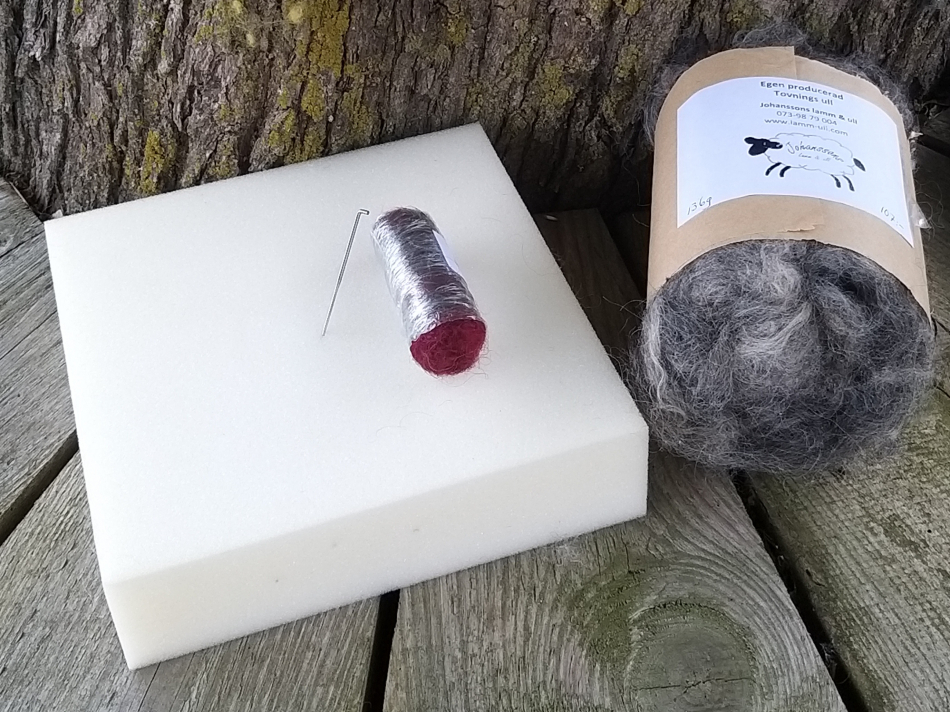 DIY kit där du får prova på att våttova 2 grytlappar med nålfiltad dekor och upphängningsögla.