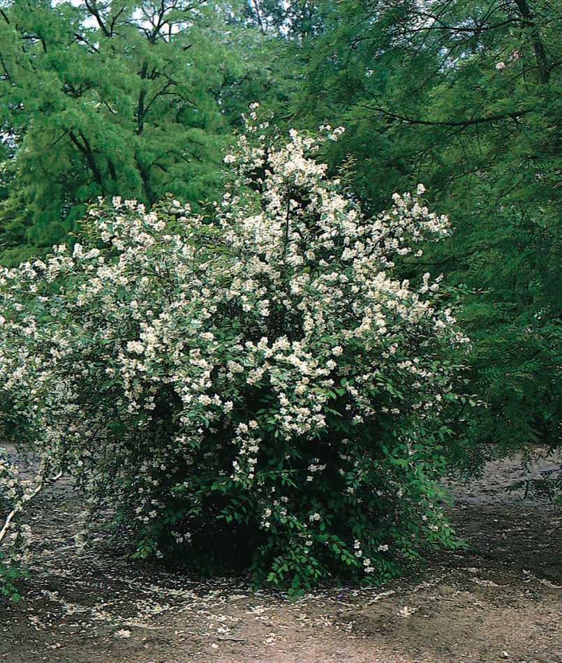 Den växer sig till en upprätt buske med överhängande grenar höjd 2-3 meter och ca 2-4 meter i bredd.