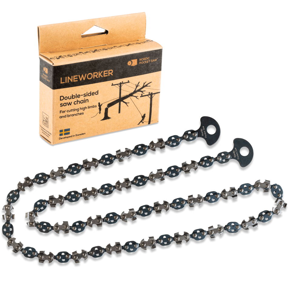 Denna produkt är en reservdel till kastsågen Lineworker. Sågkedjan är 103 cm lång och har tänder på båda sidor, vilket gör att den sågar oavsett vilken sida som landar på grenen. Tänderna är dessutom placerade i båda riktningar så att det verkar när man drar både fram och tillbaka.