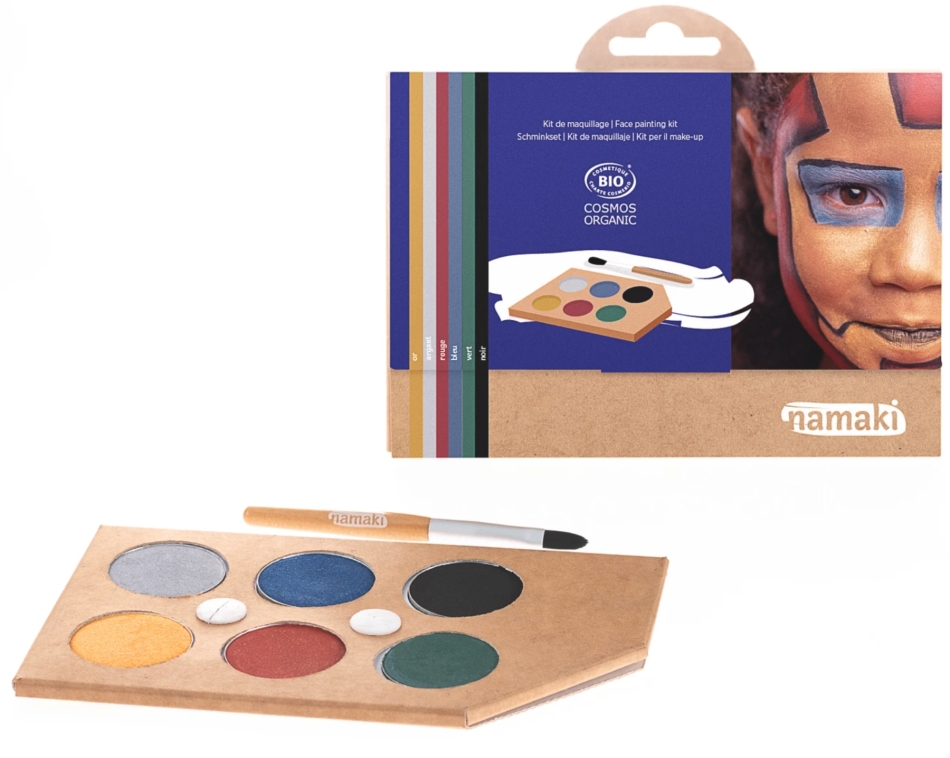 Färgstarka ansiktsfärger från franska Namaki. Måla dig till en jediriddare, android eller en superhjälte.