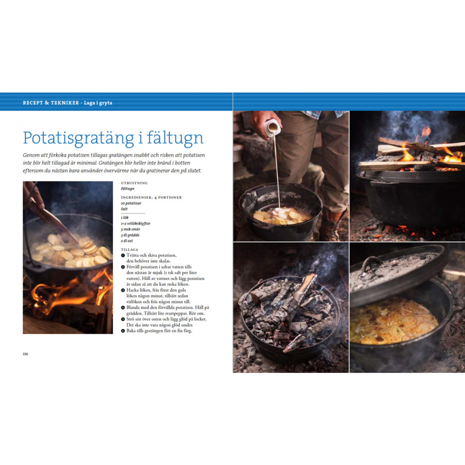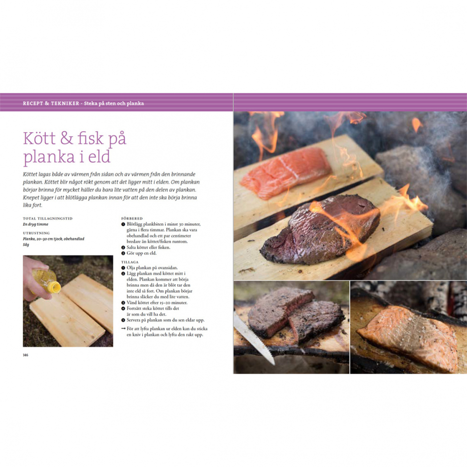 Det handlar om att vara i nuet, att låta saker ta sin tid och att umgås med varandra. Boken går igenom de vanligaste eldarna för matlagning, som pagodeld, stjärneld, jägareld och pyramideld. Du får lära dig att använda stekhäll, grillgaller, halster och gjutjärnsgryta. Vid sidan av standardteknikerna beskrivs mer speciella metoder som att tillaga på flat sten eller planka, i röktält, direkt i glöden eller i en grop med heta stenar.