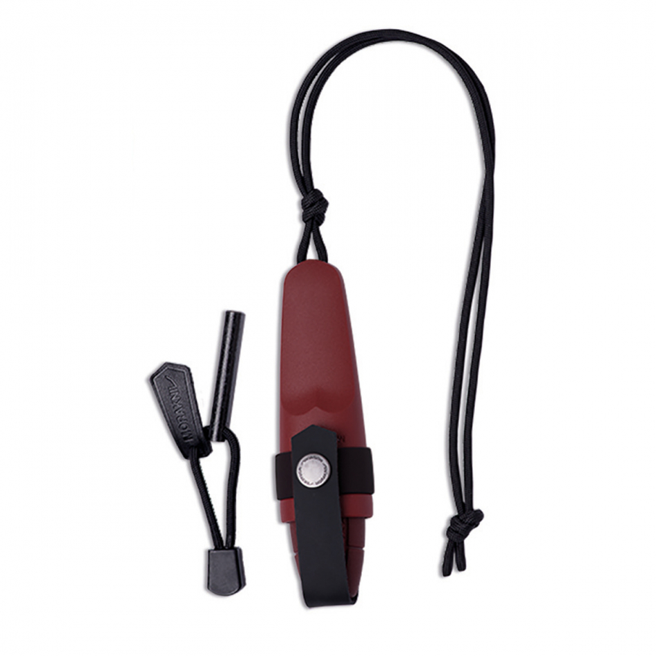 Liten fickkniv med fast blad och stora möjligheter. Kniven har en kompakt design, ett precisionsblad och bladryggen är slipad för att användas med tändstål. Med paracordsnöre kan du hänga kniven runt halsen. I kittet ingår ett tändstål som matchar knivens storlek.