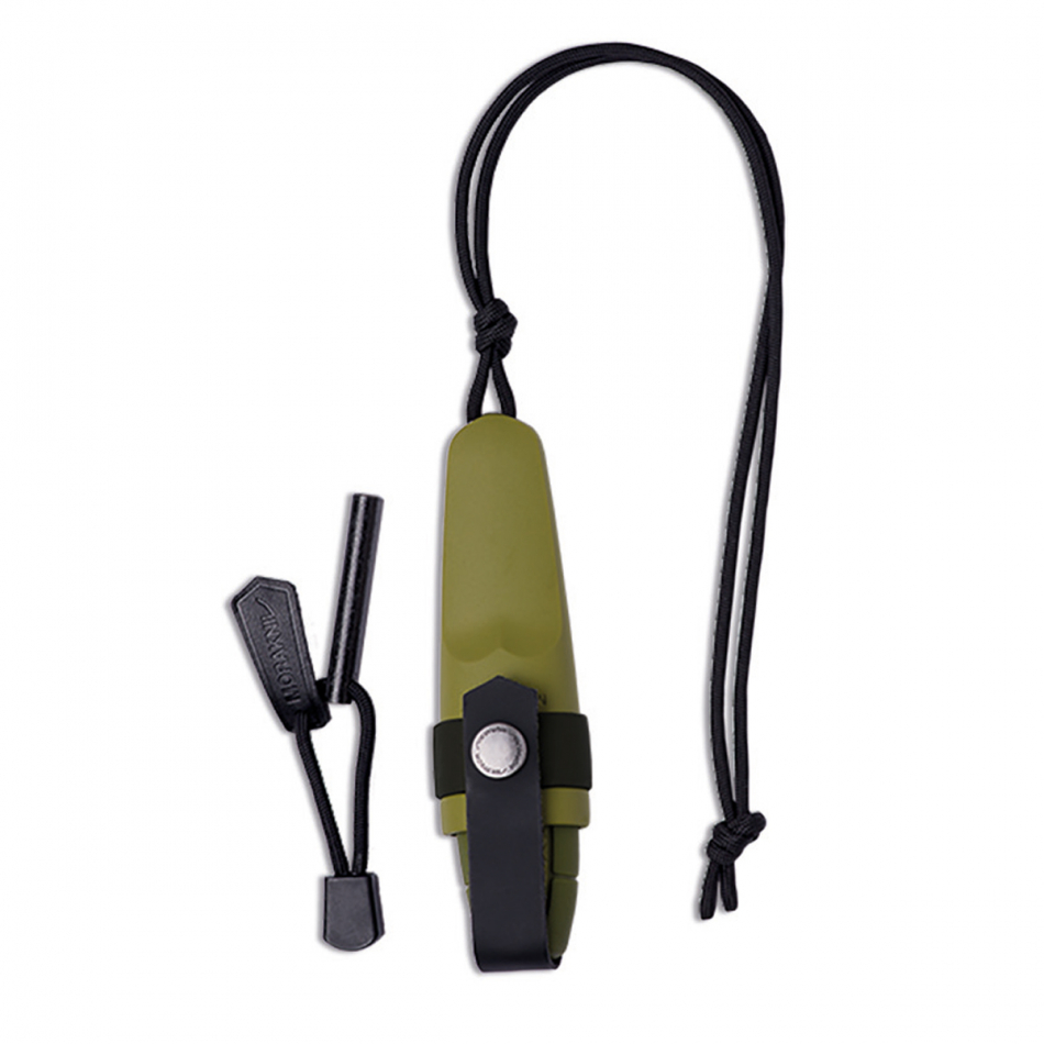 Liten fickkniv med fast blad och stora möjligheter. Kniven har en kompakt design, ett precisionsblad och bladryggen är slipad för att användas med tändstål. Med paracordsnöre kan du hänga kniven runt halsen. I kittet ingår ett tändstål som matchar knivens storlek.