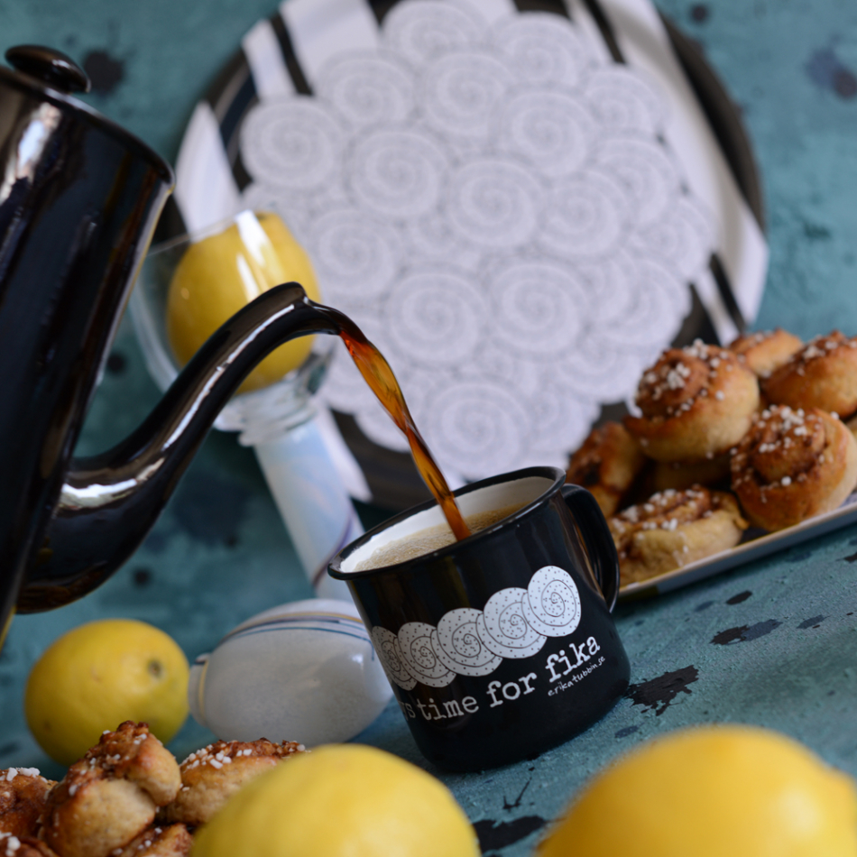 emaljmugg SWEDISH FIKA CINNAMON svart
