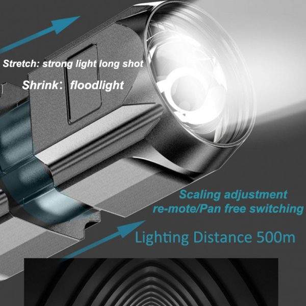 Uppladdningsbar,vattentät och mycket lysstark ficklampa med 1000 lumen, för vandring, jakt och camping