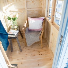 - Väggar: stolpar 45x45, 4 mm plywood kvistren furu.