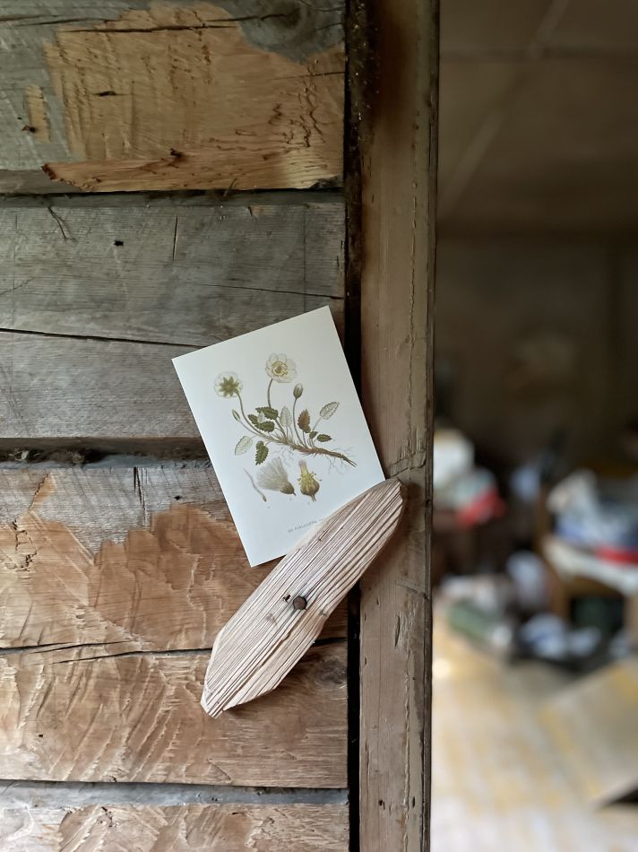 Stilrent dubbelvikt kort med kuvert med botaniskt motiv illustrerat av C.A.M. Lindman.