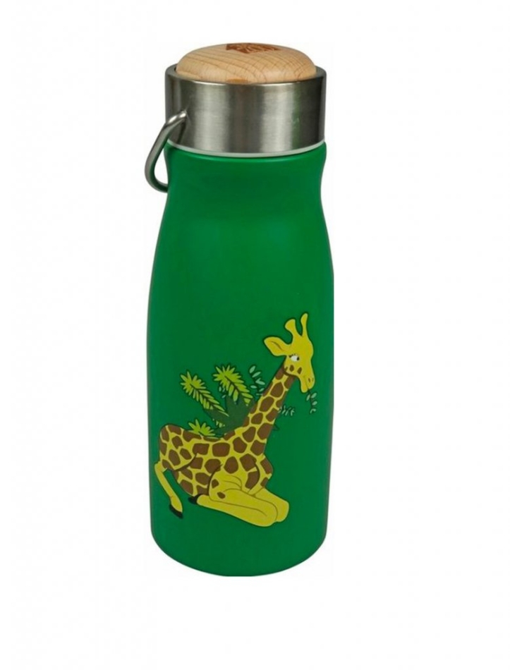 Den här stålflaskan kommer från the ZOO och är gjord av rent rostfritt stål. Tack vare dubbla isolerande väggar håller flaskan både värme och kyla riktigt länge. De här flaskorna finns i en massa olika utföranden, just den här är härligt grön och är prydd med en fin giraff.
