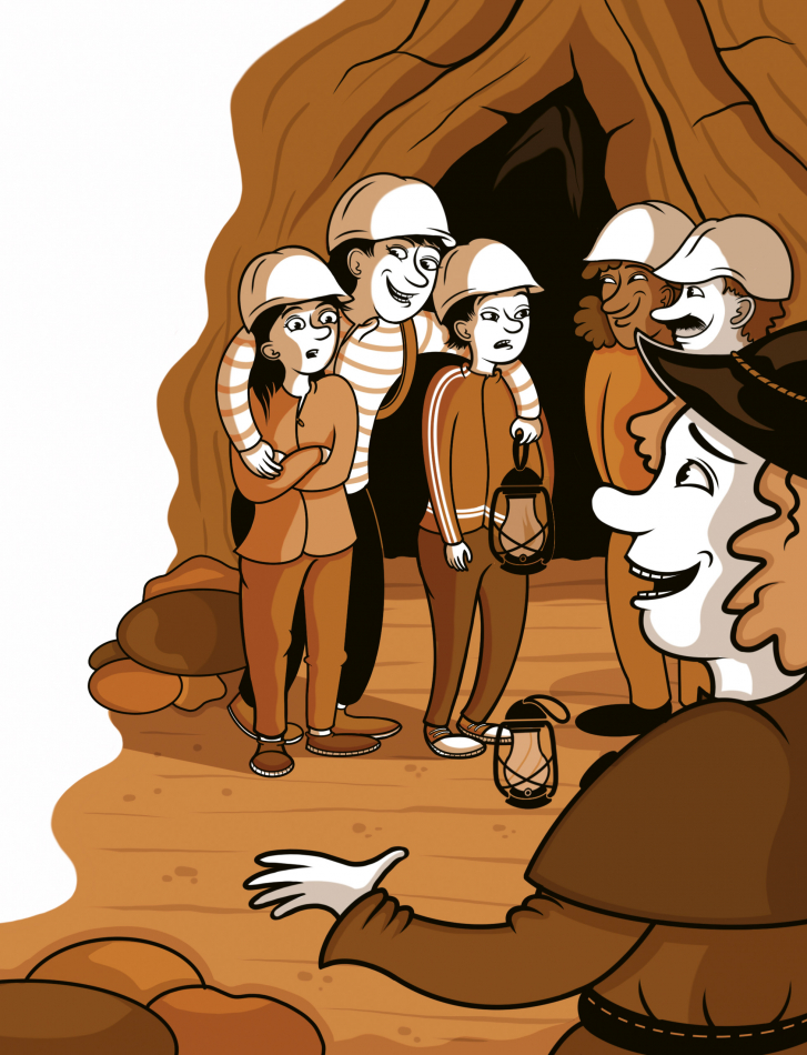 Det är sommarlov. Saga och Emil åker med mamma till Sala Silvergruva för att gå en rundtur nere i berget.