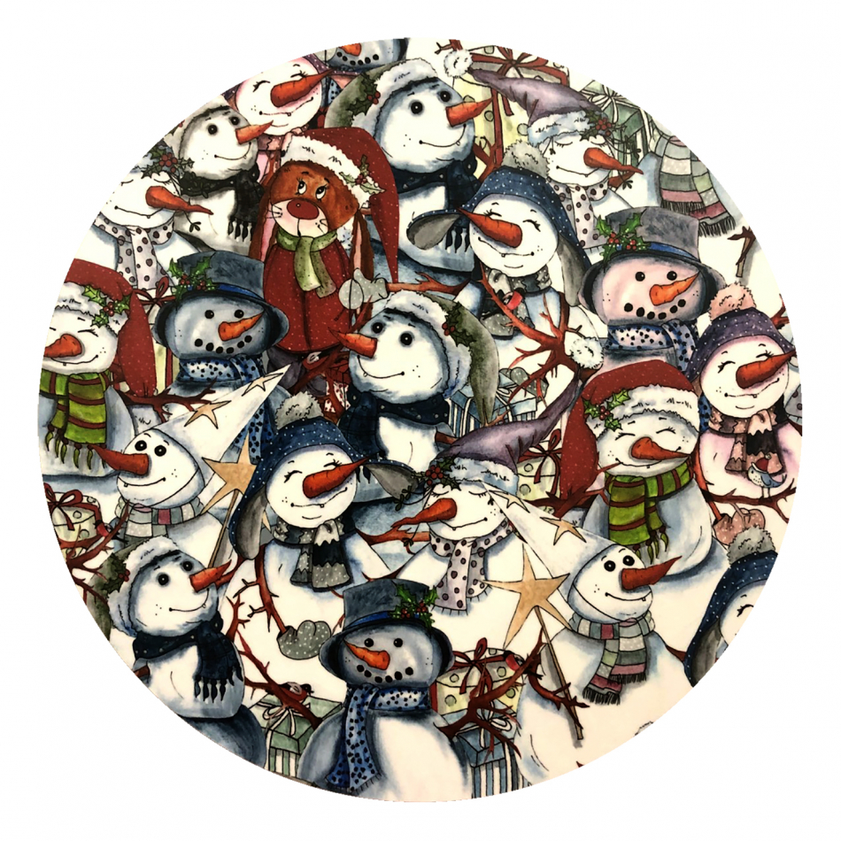 Underlägget med roliga snögubbar överallt gör sig fint på köksbänken.