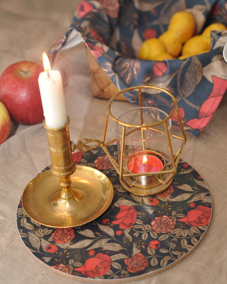 Underlägg i formpressat trä, 21 cm, och mönster Jordgubbslandet med jordgubbar, blo...