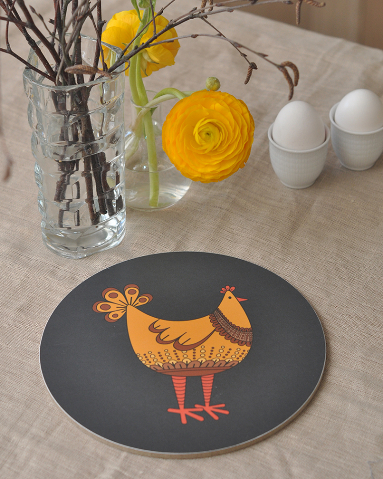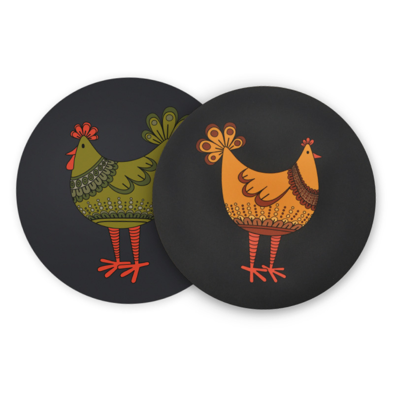 Grytunderlägg Tupp& Höna Grön-Gul 2-p