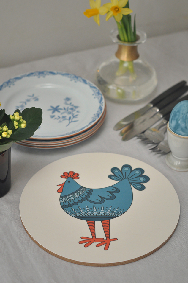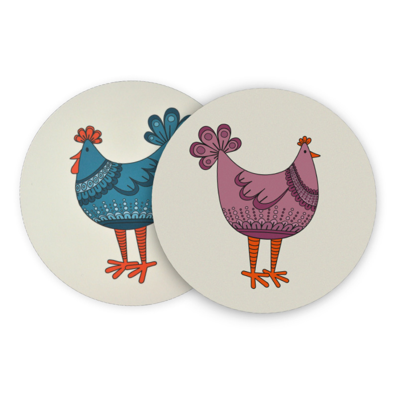 Grytunderlägg Tupp&Höna Turkos-Rosa 2-p