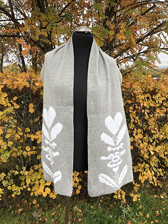Härlig jacquardvävd halsduk i ljusgrått med vitt mönster.