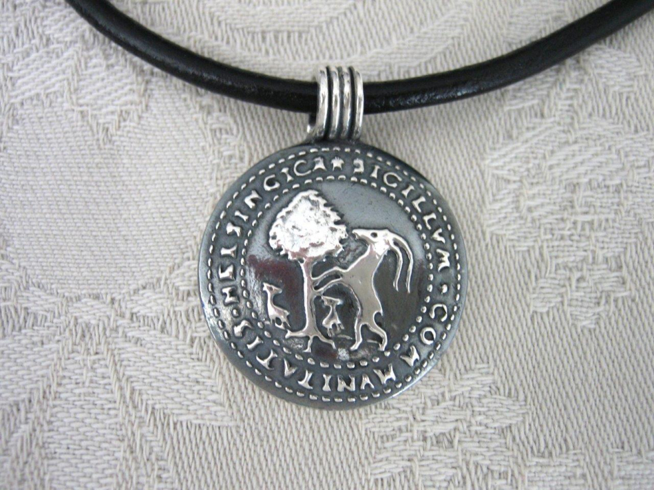 Sigillsmycket är en lätt kupad medaljong, 24 mm i diameter i helt rent silver.