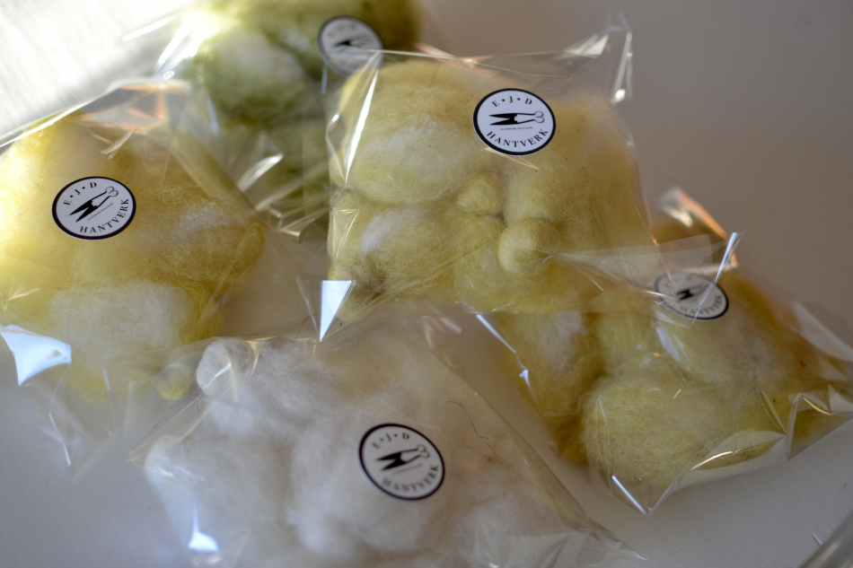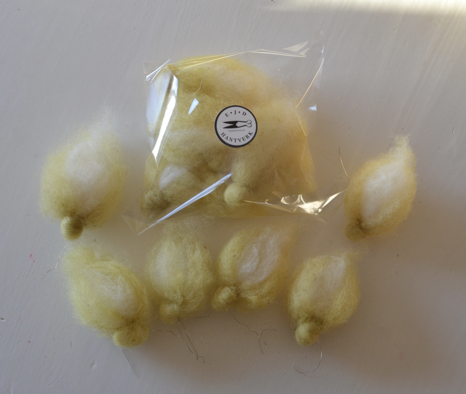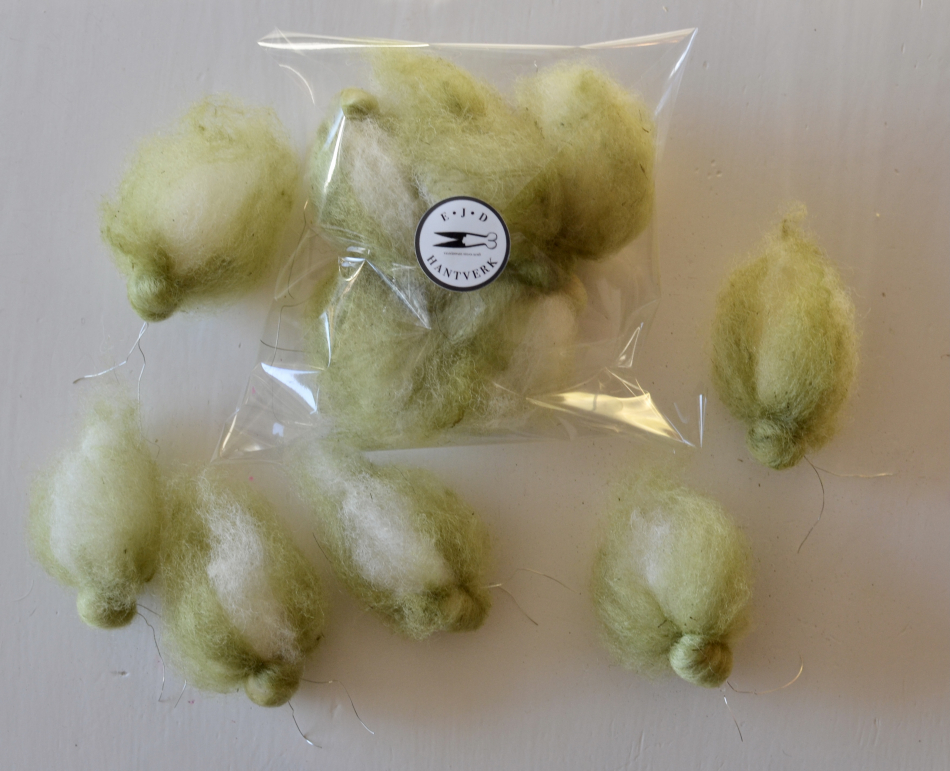 Dessa ullvippor är handgjorda av svensk tillvaratagen ull. Färgerna är framställda genom växtfärgning.