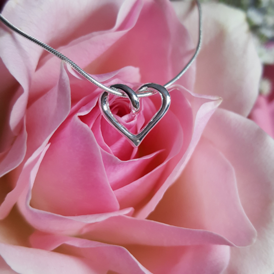 Minihjärtat är 10 mm högt, sött på den tunna ormlänken.