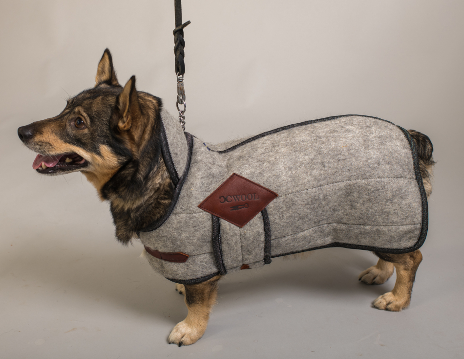 Hundtäcke i 100% svensk ull. Hundtäcket är tillverkat i en nålfilt av 100% svensk ull med läderdetaljer av svenskt läder.