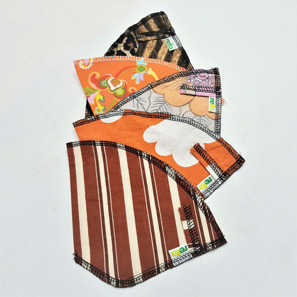 Kaffefilter av återvunnet tyg - i orangea/bruna/gula toner